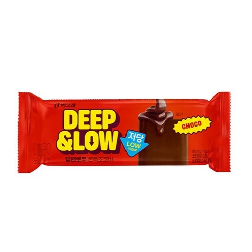 빙그레 딥앤로우의 쫀득초코바는 저당 아이스크림으로 진한 초콜릿 맛을 즐길 수 있어요. 70ml에 약 75kcal로 가볍고, 쫀득한 식감이 매력적입니다. 당 섭취를 줄이면서도 진한 초코 맛을 원하는 분에게 추천합니다.