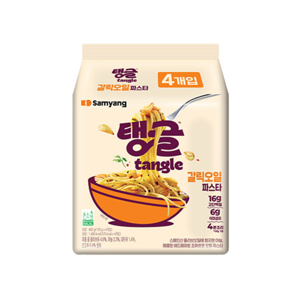 삼양 탱글 갈릭오일파스타는 올리브오일에 마늘과 레드페퍼를 조합해 담백하면서도 알싸한 풍미를 살린 컵파스타예요. 병아리콩 함유로 단백질과 식이섬유가 풍부하며, 4분 이내에 빠르게 조리할 수 있습니다.