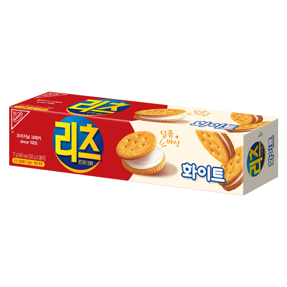 크래커 두 장 사이에 부드러운 화이트 크림이 들어있는 샌드위치 크래커입니다. 고소한 크래커와 부드러운 크림의 조화가 특징이에요. 커피나 차와 함께 곁들이면 더욱 맛있게 즐길 수 있습니다.