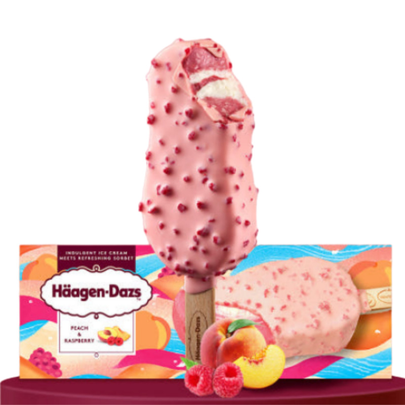 피치와 라즈베리의 상큼한 과일 맛이 조화를 이룬 바 형태 아이스크림입니다. 진한 과일 풍미와 부드러운 식감이 특징이에요. 상큼한 과일 맛 아이스크림을 즐기고 싶을 때 추천합니다.