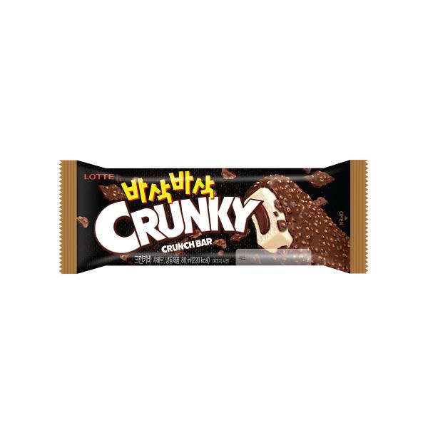 크런키 초콜릿의 아이스크림 바 버전으로, 초콜릿 속 크런치 퍼프가 살아있는 바삭한 식감이 특징입니다. 고소한 초콜릿과 바삭한 식감이 잘 어우러져 있으며, 한 입에 진한 단맛과 바삭함을 즐길 수 있습니다.