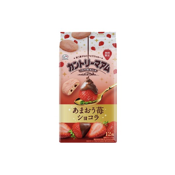 후지야의 컨트리맘 시리즈 딸기 초콜릿 맛입니다. 바삭한 쿠키에 딸기 초콜릿 칩이 풍부하게 들어있어 달콤하고 상큼한 맛을 즐길 수 있습니다. 티타임 간식이나 여럿이 나눠 먹기 좋은 12입 구성입니다.