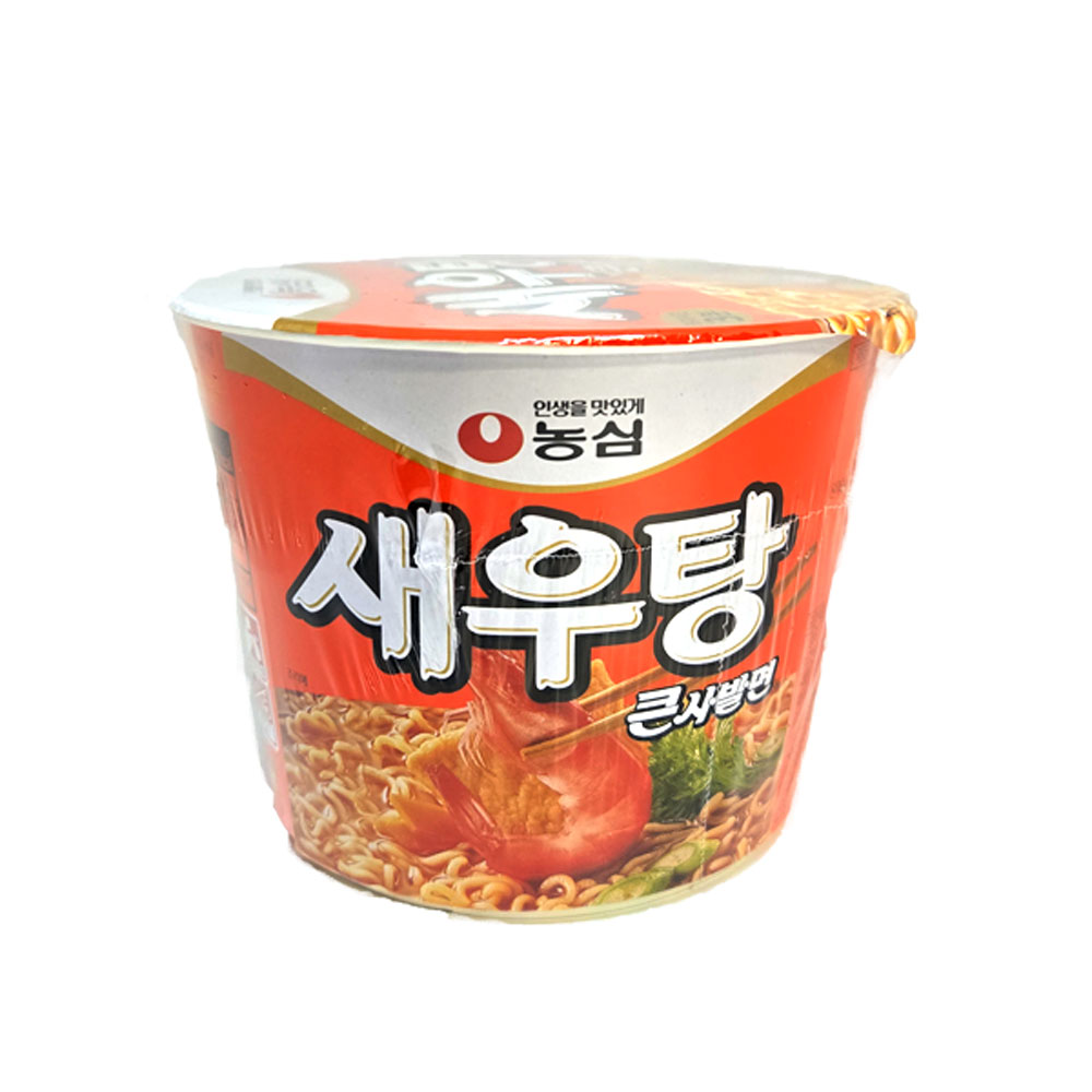 신선한 새우를 주재료로 한 농심의 대표 컵라면으로, 독특한 새우 향이 인상적입니다. 깔끔하고 상큼한 국물 맛이 특징이며, 큰사발 사이즈로 넉넉한 양을 즐길 수 있습니다. 개운한 국물이 당길 때 추천합니다.