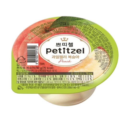 CJ 쁘띠첼의 복숭아 젤리 디저트로, 복숭아의 부드럽고 달콤한 풍미가 특징이에요. 쫀득한 식감과 상큼한 뒷맛이 좋으며, 언제든 간편하게 즐길 수 있어요. 가벼운 간식이나 외출 시 추천합니다.