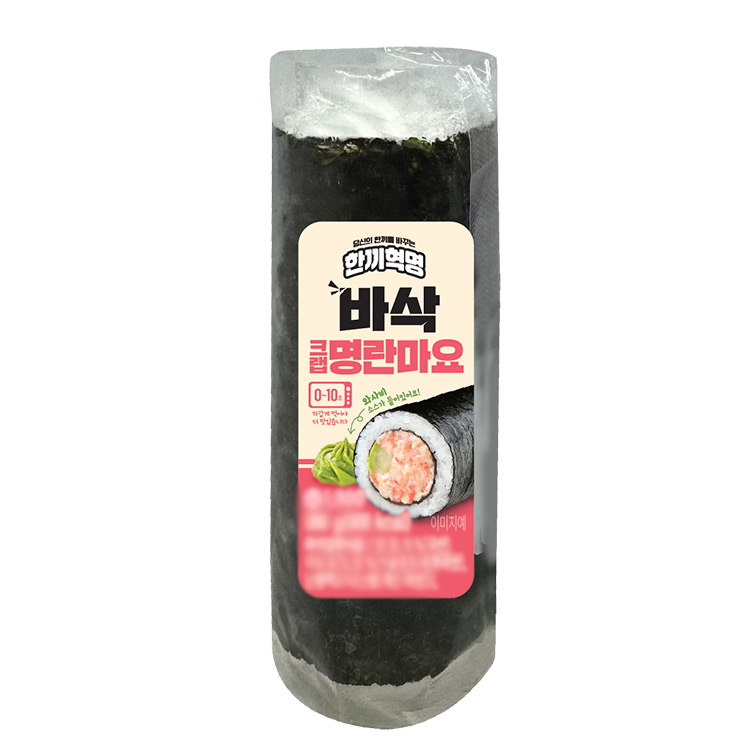 바삭한 김의 식감이 살아있는 크랩과 명란 마요 김밥입니다. 짭조름한 명란과 부드러운 크랩, 마요네즈가 어우러져 감칠맛이 풍부합니다. 밥과 분리된 김의 바삭함을 즐기며 직접 말아 먹을 수 있어 색다른 재미가 있습니다.